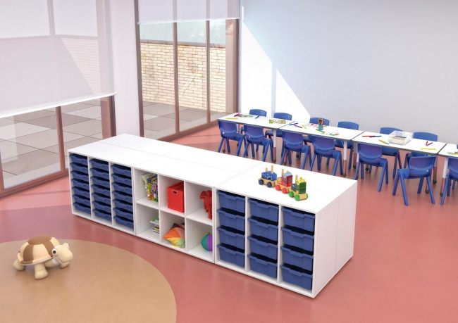 Chaque casier intègre un bac, permettant de ranger vos objets (feuilles, feutres, ...)et de les retrouver facilement et rapidement.