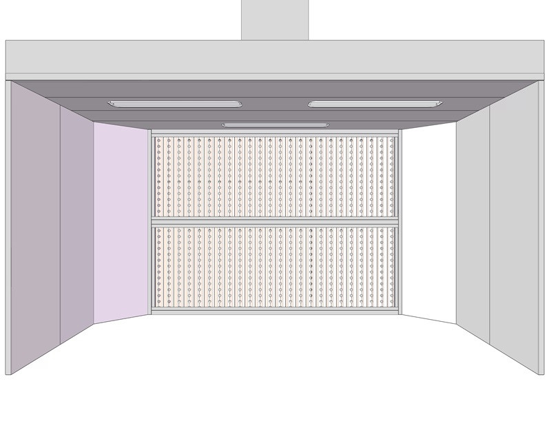 Notre mur d’aspiration est spécialement conçu pour assurer la captation du brouillard de peinture, des poussières et des solvants au plus près de leur émission. Contrairement à une cabine fermée, cette solution d’aspiration ouverte se positionne directement derrière l’opérateur. Vous travaillez librement face au mur, tandis que le système aspire immédiatement l’air chargé en particules, évitant toute dispersion dans l’atelier.