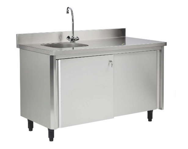 - Dessus inox AISI 304L ép. 15/10e renforcé par un panneau collé en mélaminé hydrofuge ép. 19 mm