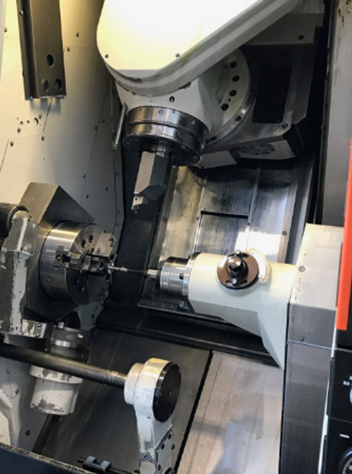- Une broche de fraisage d’avant-garde à grande vitesse, orientable sur 240 degrés, une tourelle inférieure motorisée et une broche secondaire avec les mêmes fonctions de l’axe C que la broche principale : tout cela contribue à un usinage d’une flexibilité inégalée.