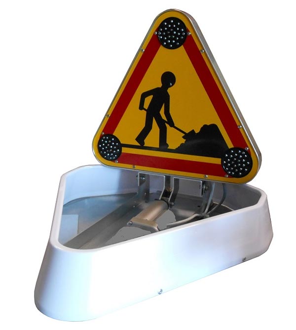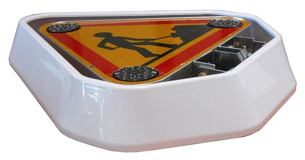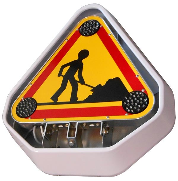 Doté d'un carter en PVC blanc, c'est un panneau de signalisation motorisé de forme triangulaire qui offre un signal lumineux de bonne visibilité.