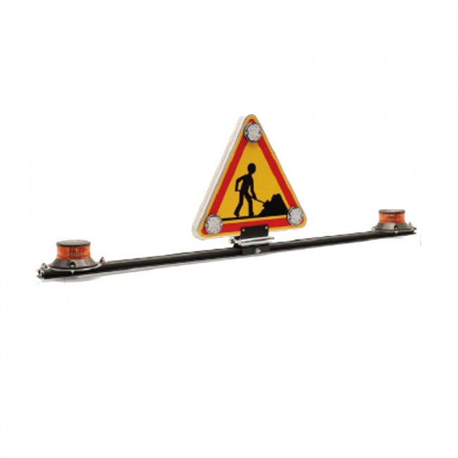 - Composé de gyrophares halogène ou à leds, et d’un triangle 500mm avec le symbole du travailleur