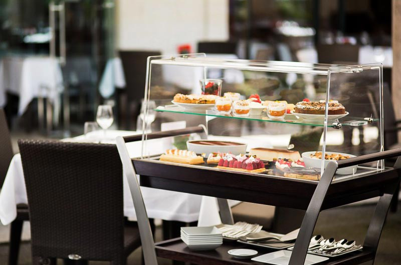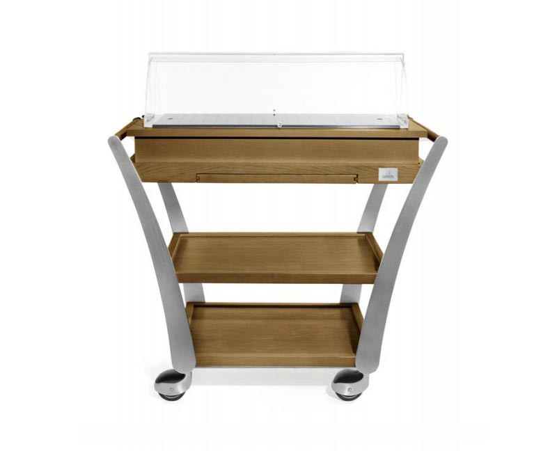Les plateaux en placage chêne massif transforment votre chariot de service en véritable écrin pour vos fromages et desserts.