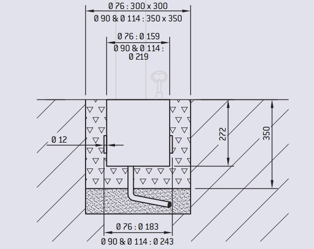 - Hauteur de pénétration dans le sol des potelets : 180 mm.