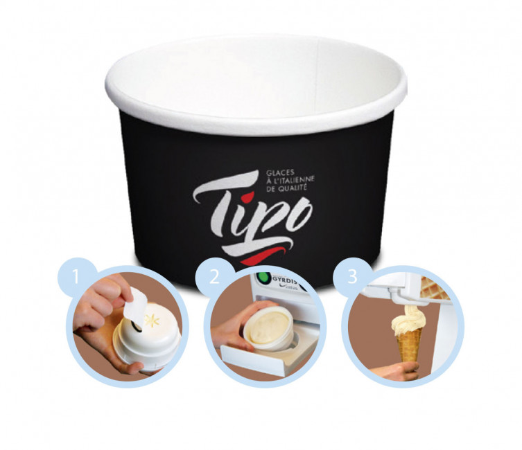 Une gamme de 8 parfums a été fabriquée spécialement pour cette machine à glace à l'italienne.