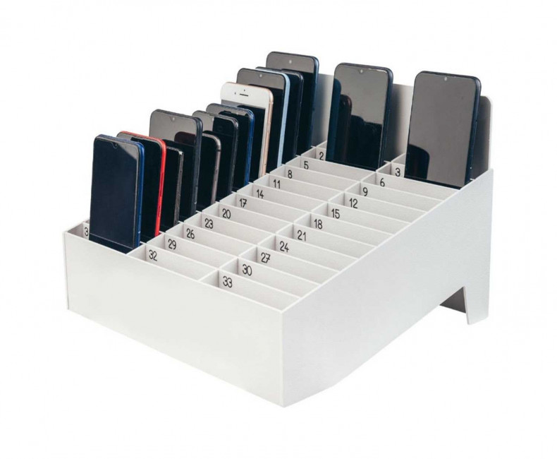 Ce casier téléphones compact accueille jusqu'à 33 appareils dans des compartiments individuels sécurisés.