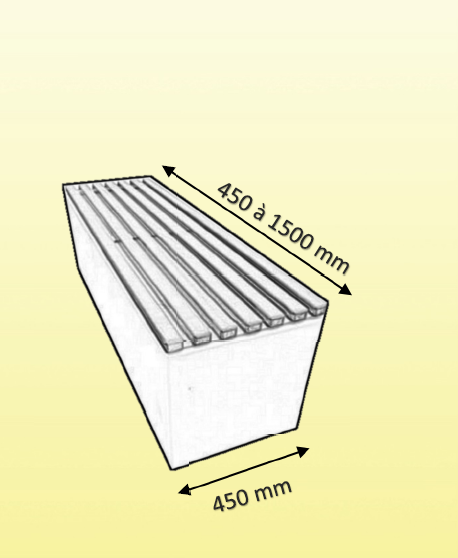 Le tout posé sur des lames acier plat d"épaisseur 5mm de longueur 80cm espacés de 45cm pour sceller sur des blocs béton