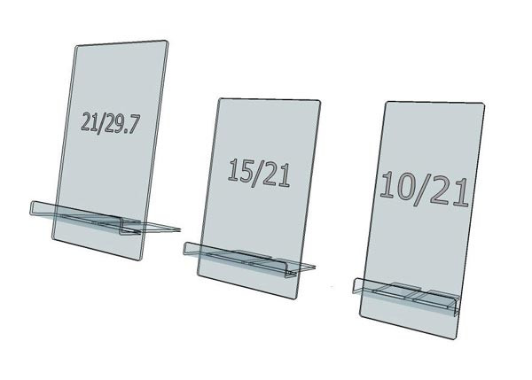 - 3 tailles de présentoir: 10/21, 15/21 et 21/29,7.