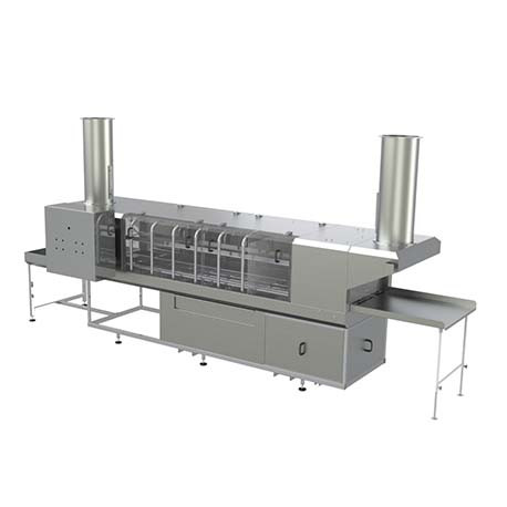 Après le prélavage et le lavage principal, le tunnel passe à la section de rinçage final.