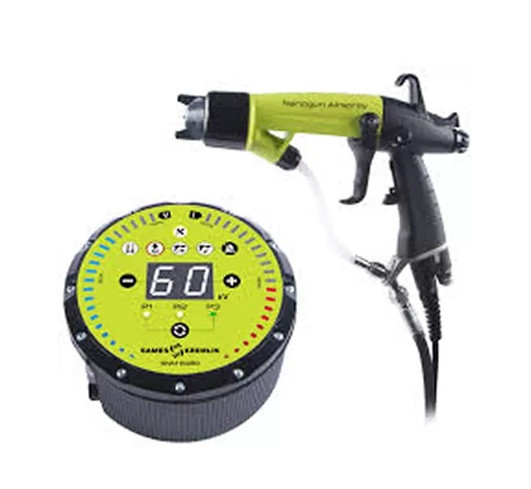Notre pompe de pulvérisation électrostatique fonctionne comme un système classique de peinture pneumatique : la peinture est mise en pression par une pompe (airless, airmix ou basse pression selon le modèle) puis acheminée jusqu’au pistolet.