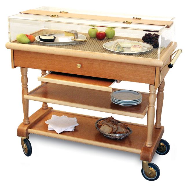je recherche une table roulante réfrigérée pour le service des petits déjeuners