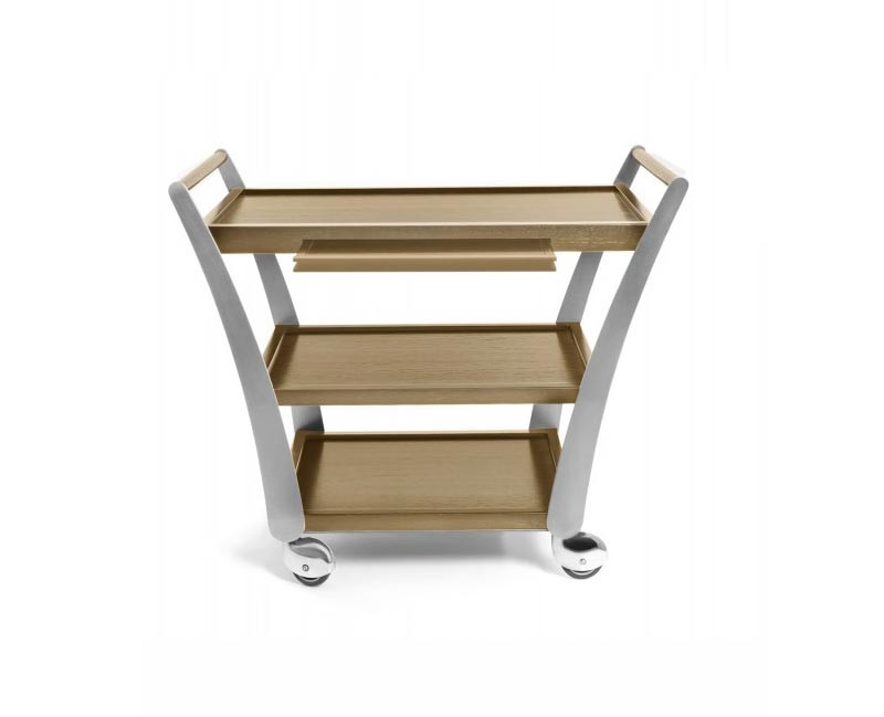La tirette coulissante intégrée optimise l'organisation du service, tandis que les 4 roues diamètre Ø100 mm garantissent une mobilité parfaite en salle.