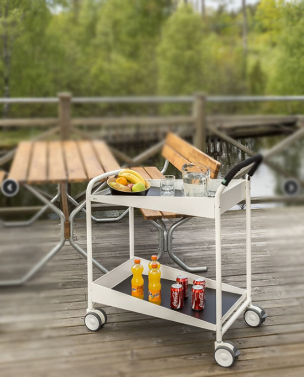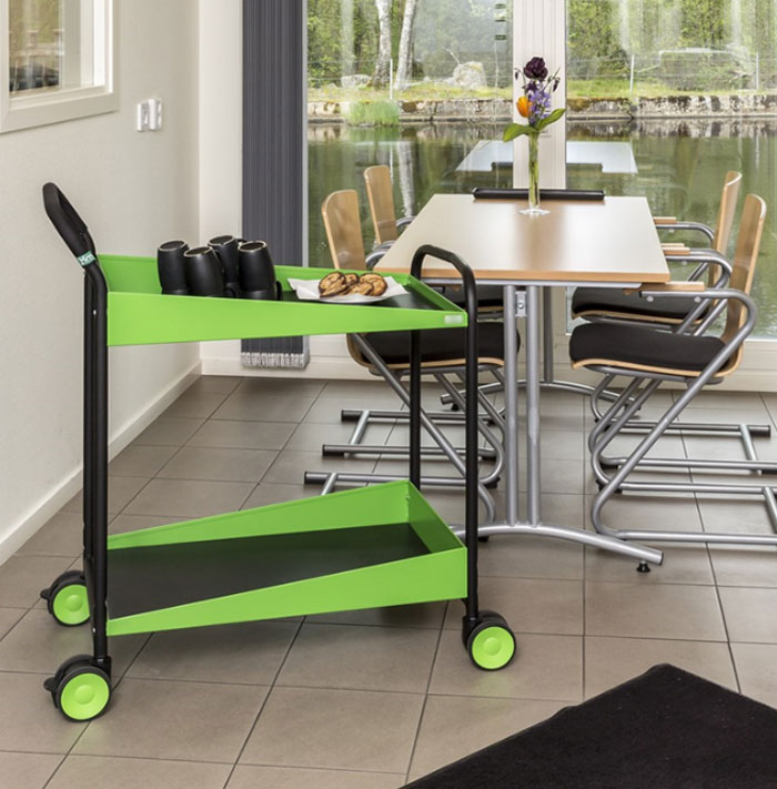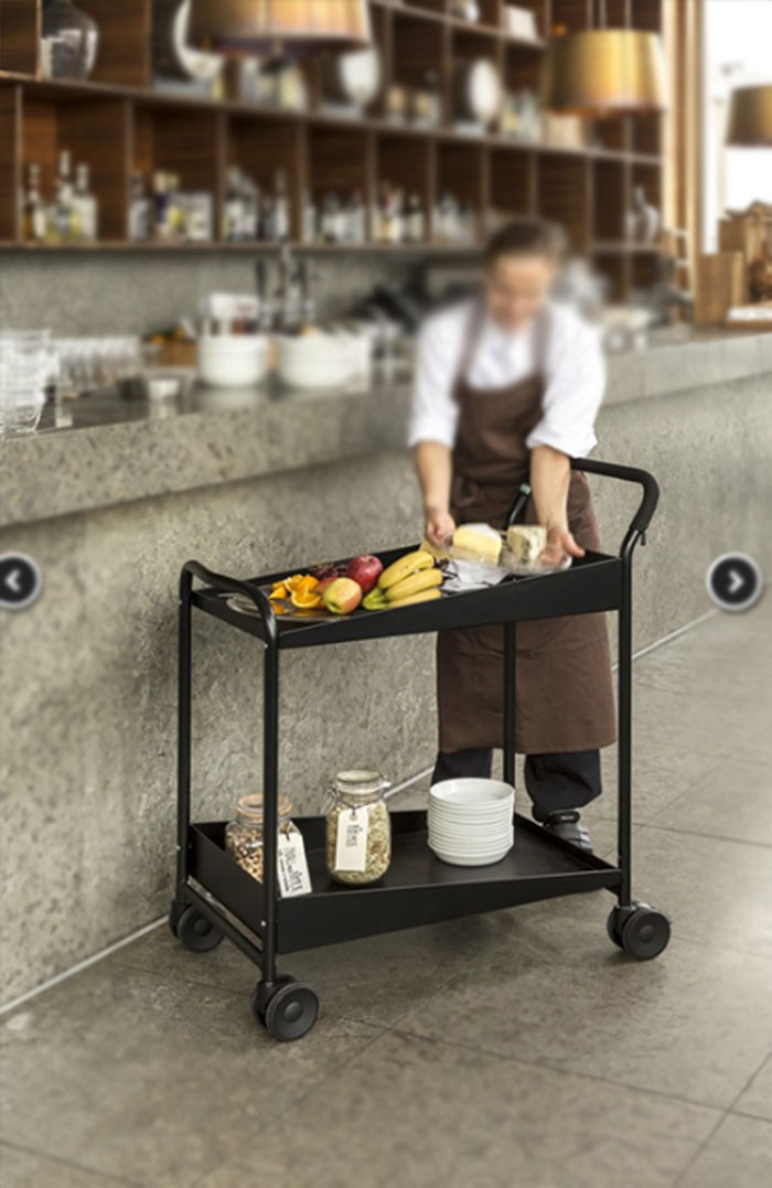 Des chariots d’un design élégant, permettant de transporter des repas ou des boissons, et ils sont équipés de roues jumelées pour une manœuvre aisée tout en apportant ergonomie à l’utilisateur.