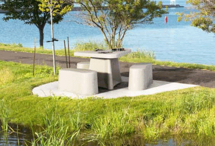 Cette table de pique nique en béton est idéale pour les petits espaces .