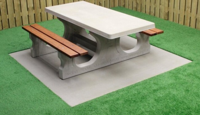 Pour garantir un soutien optimal de votre table, les plaques de fond sont nécessaires pour l'installation dans un parc ou sur une pelouse. Elles ne sont pas obligatoires pour les surfaces pavées ou pour une cour de récréation. Il est plus facile de tondre l'herbe autour d'une plaque de fond en béton, de ce fait l'espace reste propre.