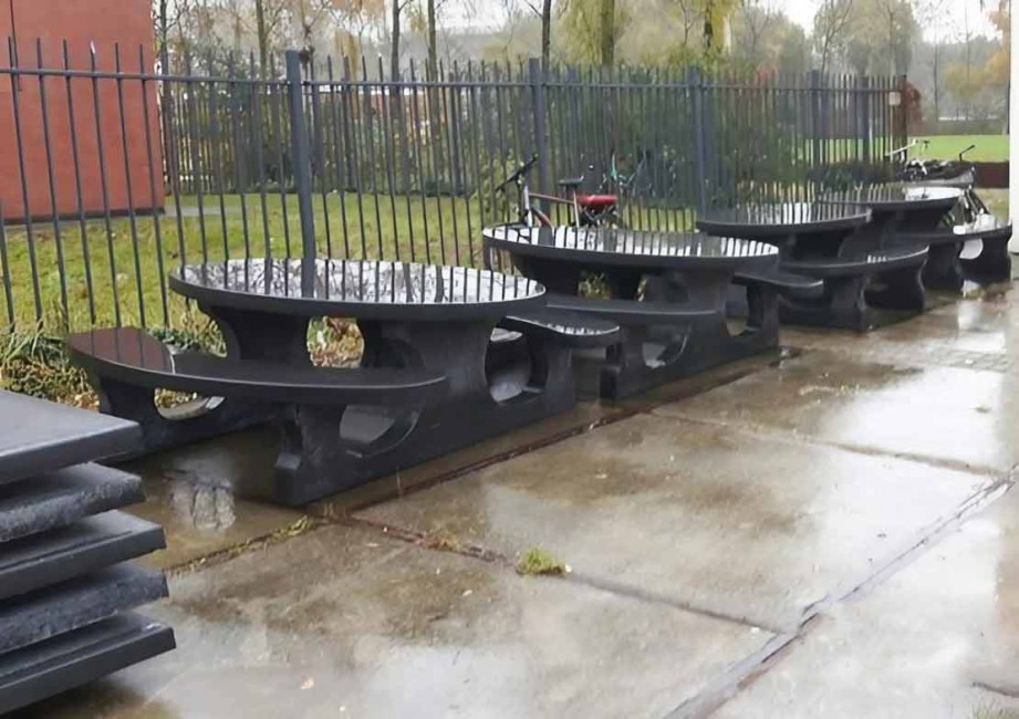 Cet ensemble table banc en forme ovale est parfait pour équiper vos espaces publics, écoles, parcs…