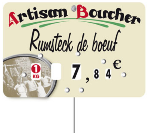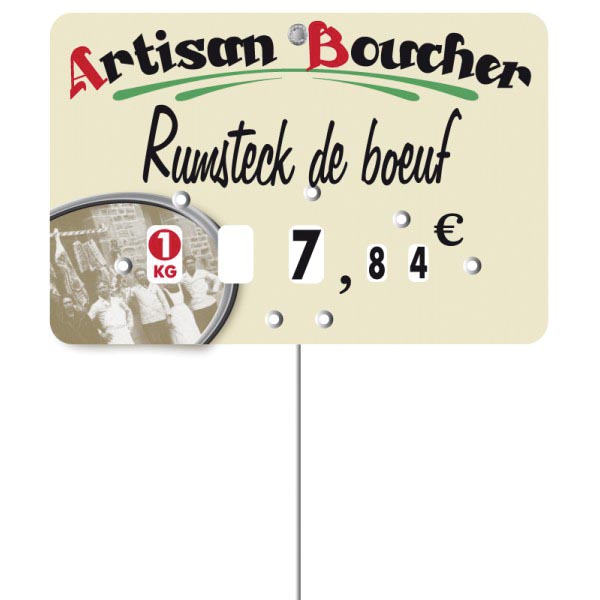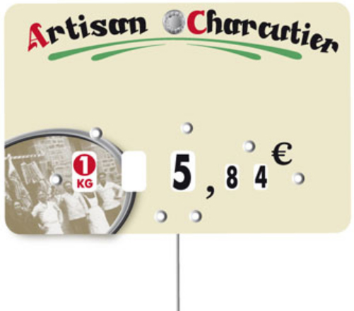 étiquette pique-prix pour boucherie charcuterie est réalisée pour informer la clientèle sur le nom et le prix des aliments vendus.