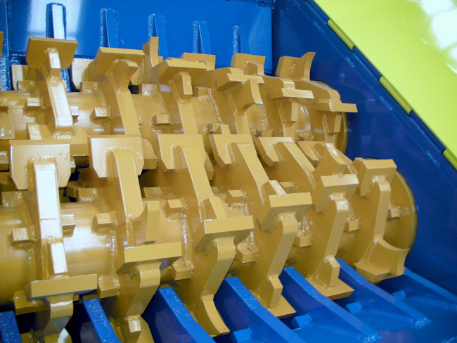 Unité de broyage à 2 rotors de 690 mm de diamètre et de 1565 mm de longueur avec arbres acier haute résistance largement dimensionnés et outils de grande capacité broyant dans les 2 sens et rechargeables. Les 48 outils par rotor en acier spécial au manganèse à haute résistance à l’abrasion sont disposés de manière à assurer une agressivité et un débit maximal. Peignes latéraux de coupe en acier spécial à haute résistance à l’abrasion. Système de chicanes d’étanchéité au niveau des passages d’arbres à travers le corps du broyeur. Peigne de rebroyage remplaçable sous les rotors pour affinage des produits broyés permettant de modifier la finesse de broyage suivant équipement de cette contre-coupe. Outils fixes soudés assurant une grande robustesse, l’usure est compensée par des rechargements directs sur place sans démontage. Couple de plus de 90 000 N*m par rotor.