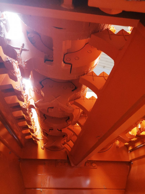 Les outils en acier spécial au manganèse à haute résistance à l’abrasion sont disposés de manière à assurer une agressivité et un débit maximal, on peut monter 16 ou 32 outils par rotor.