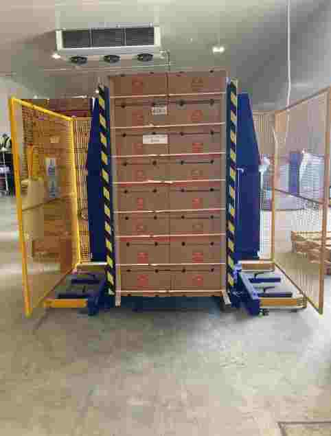 Les dimensions des plateaux (H 1,80 m x P 1,20 m) et l’encombrement total (L 2,60 x P 1,90 x H 2,2 m) assurent une compatibilité optimale avec les zones de manutention existantes.