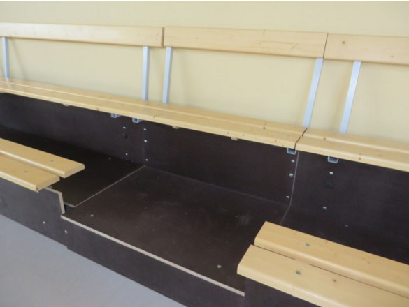 - A positionner en bout d’escalier lorsque les tribunes sont équipées de dossiers et non plaquées au mur.