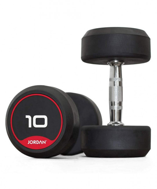Chaque haltère est équipé d'une poignée en acier traité offrant une prise ferme et confortable.