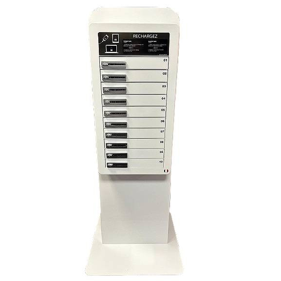 borne de recharge pour mobile et tablette – 10 casiers – montée sur colonne vous permet de proposer une solution de recharge pour lieux publics fiable, sécurisée et simple à utiliser.