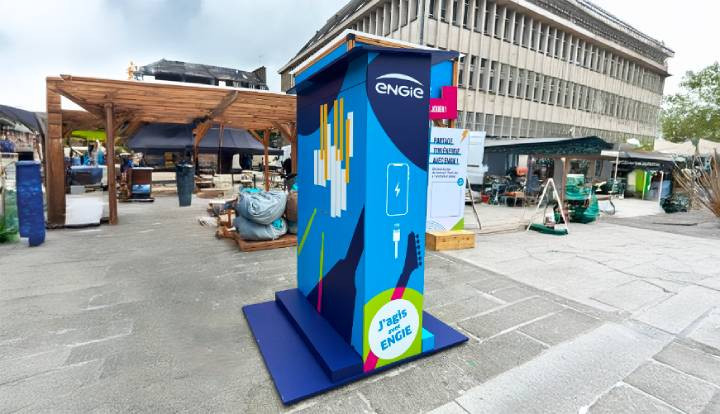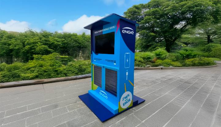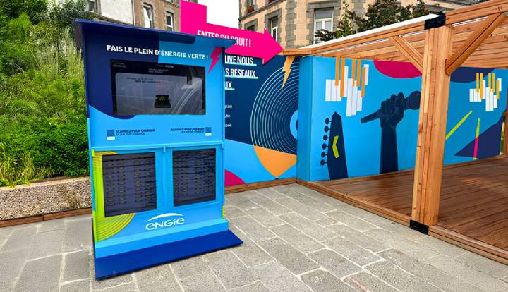Cette station powerbank extérieure a été pensée pour les événements, les espaces publics et toutes les zones où les usagers doivent pouvoir recharger rapidement leur smartphone.