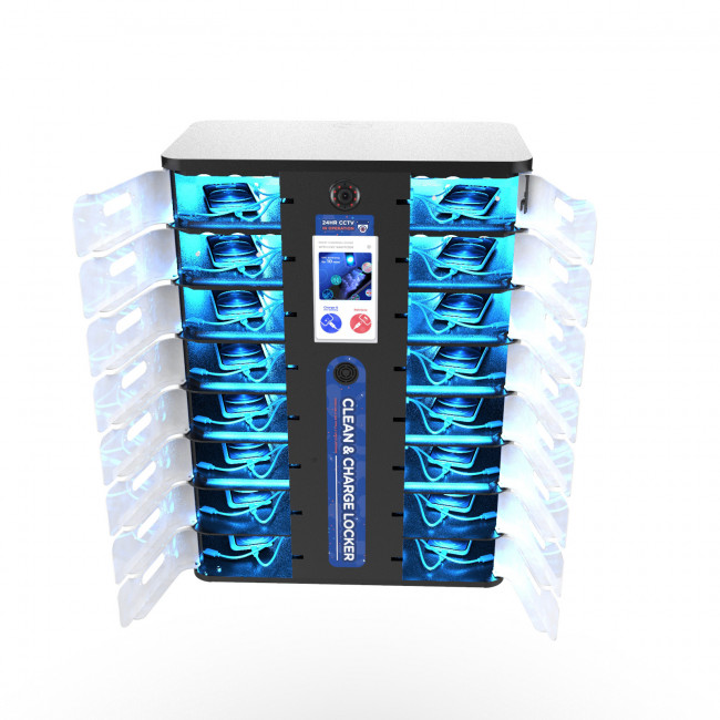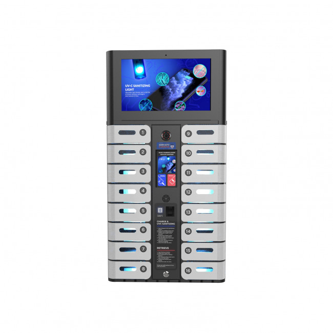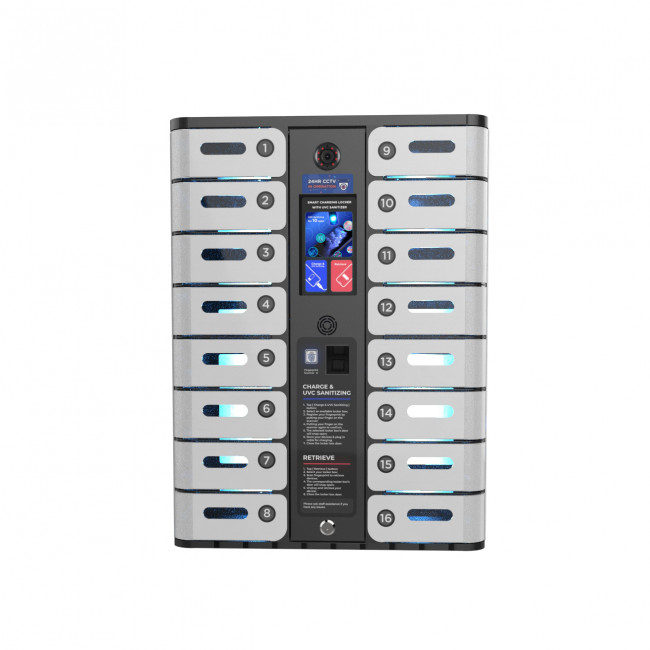 Dotée de 16 casiers de recharge et d'un système de stérilisation UV-C intégré, cette borne offre une solution pratique et hygiénique pour maintenir vos appareils électroniques alimentés en énergie tout en assurant leur propreté.
