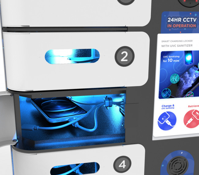 L'un des principaux avantages de cette borne de recharge réside dans son système de stérilisation UV-C.