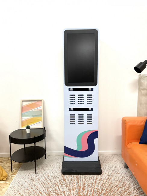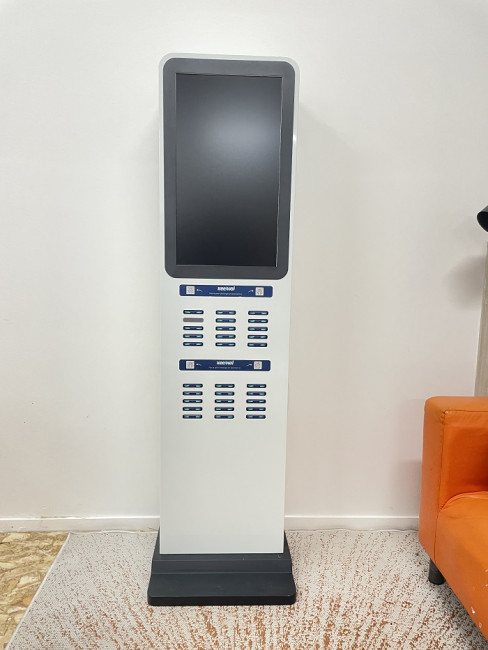 Cette borne de recharge avec 30 batteries externes vous permet d'offrir à vos clients et visiteurs une plus grande liberté sur tout le parcours clients / visiteurs.