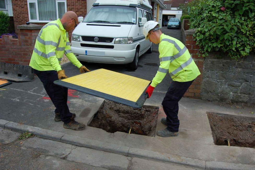 Cette passerelle de chantier en fibre de verre renforcée sert à garantir la circulation des personnes et des véhicules légers au-dessus d'un vide.