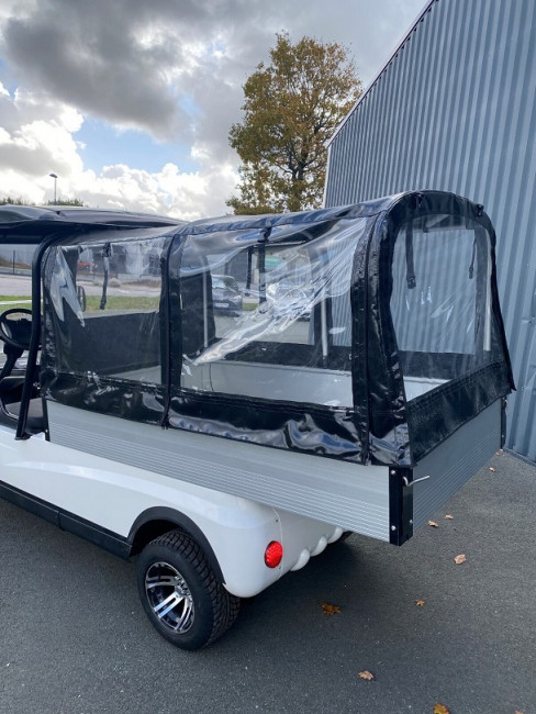Le véhicule est équipé d'un éclairage avant et arrière, de clignotants, de feux stop, d'un klaxon, d'un bip de recul et d'un chargeur embarqué.