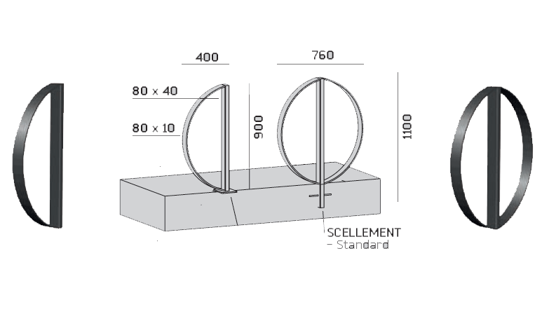 Appui vélo avec dimensions de 760 x 80 mm