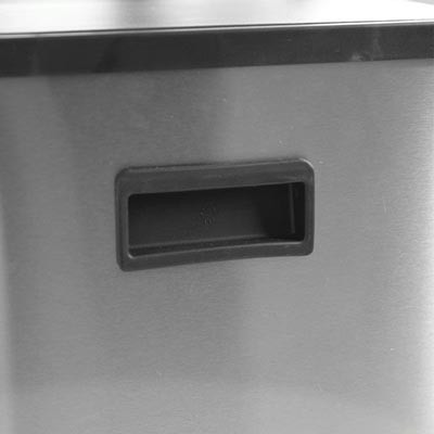 L’ouverture par pédale garantit une manipulation sans contact pour une meilleure hygiène.