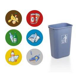 Grâce aux 6 étiquettes de pictogrammes de recyclage, vous instaurez vous-même les catégories de tri sélectif : verre, métal, papier, plastique, biodéchets, déchets non recyclables.