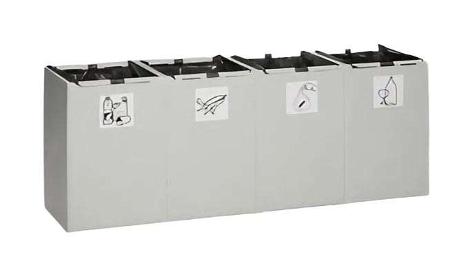 | Réf. TC :373924755 | Poubelle tri sélectif plastique | Quadruple | 40 | 1010 x 405 x 570 | Gris clair | -