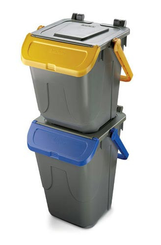 Capacité : 25 L ou 35 L Polypropylène 100% recyclable Porte et couvercle à bec basculant Couvercles colorés