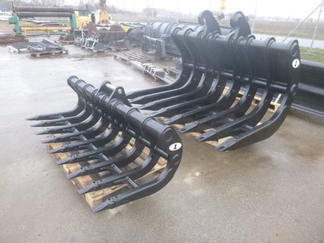 12/10/2025un fleco de 5 a 6 metres de large pour ramassage cailloux pour pelle caase cx 210 attache 2 axes de 80mm entre joue 30.5 cm
