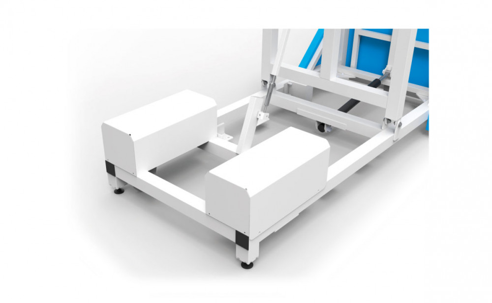 Le déplacement s’effectue aisément grâce aux 4 roulettes de transport et aux 4 pieds réglables pour un ajustement précis de la planéité.