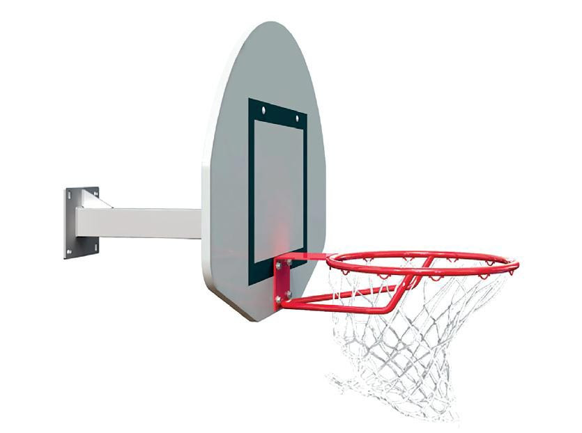 Les 4 fixations murales sur platine 200 x 200 mm assurent un ancrage solide sur différents types de supports (profilé métallique, lamellé‑collé, etc.), ce qui vous permet d’installer facilement le but de basket mural extérieur dans la plupart des infrastructures sportives.