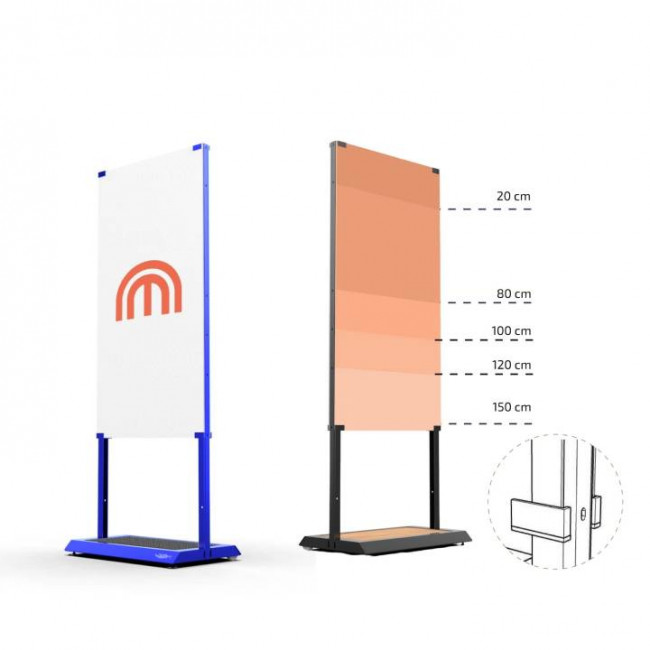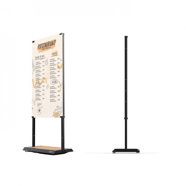 Sa base lestée avec roulettes permet un déplacement sans effort par une seule personne, rendant ce totem parfait pour les événements, expositions et affichages temporaires.