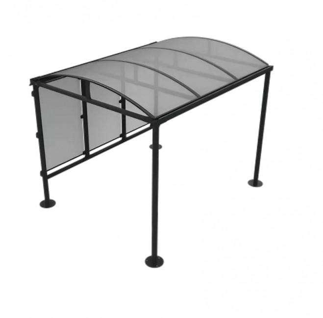 Les côtés et la toiture sont habillés en polycarbonate ou en polycarbonate associé à d’autres habillages, ce qui apporte une bonne luminosité à l’intérieur de l’abri.