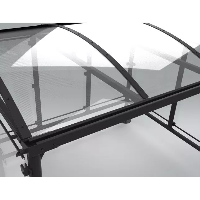 Toiture en voûte avec gouttières et cloisons transparentes