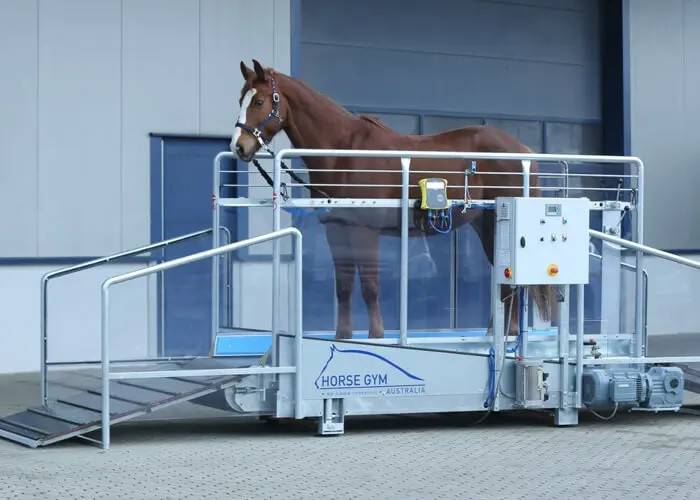Les parois latérales transparentes offrent une visibilité optimale sur le comportement du cheval, tandis que le système d'arrêt d'urgence et les rampes de sécurité garantissent une utilisation sans risque.