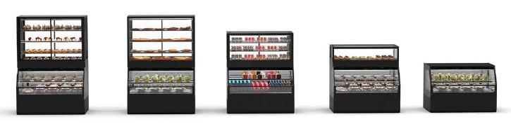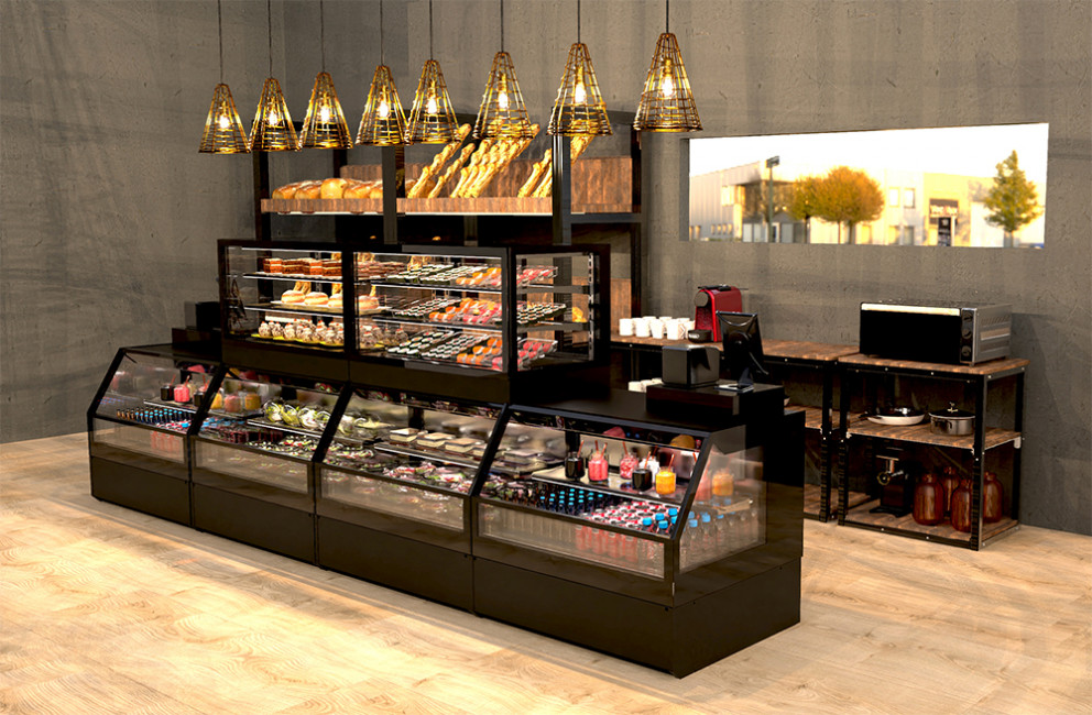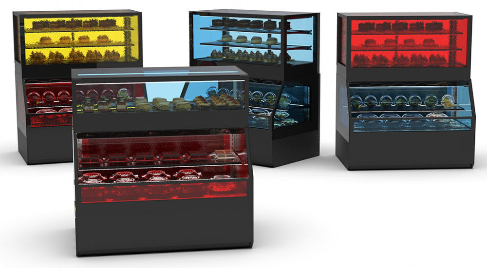 Il est possible de combiner des vitrines de différentes versions : Froid + Chaud, Chaud + Neutre, Neutre + Froid etc...
