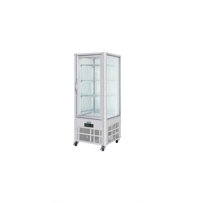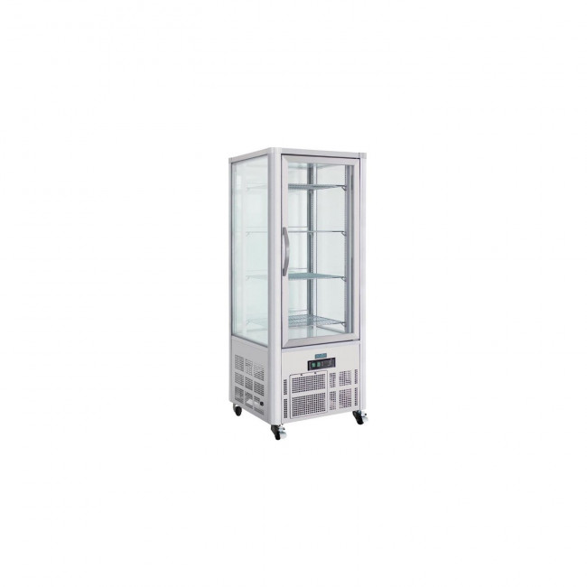 Cette vitrine à pâtisserie 4 faces vitrées permet un bon maintien au froid et ainsi la meilleur conservation pour vos gâteaux et autres pâtisseries.