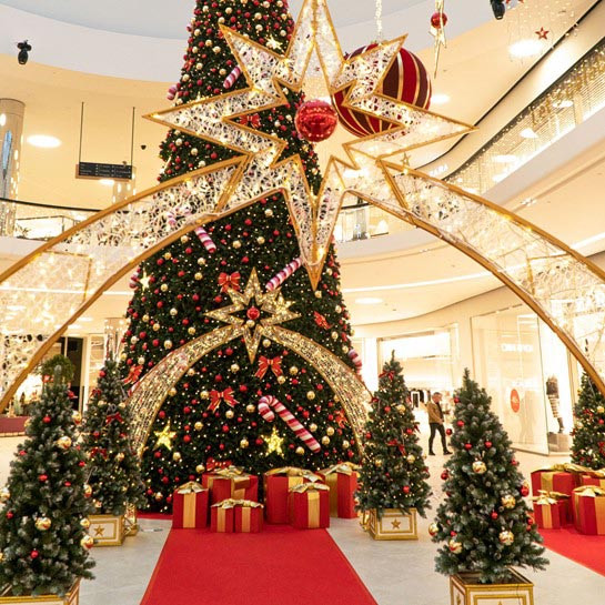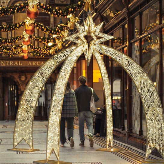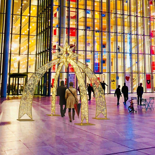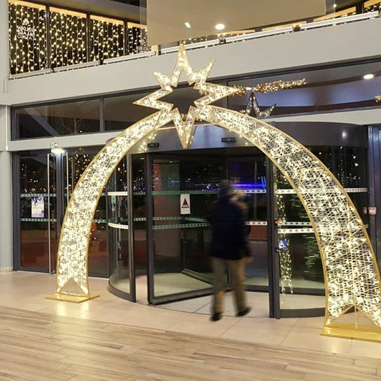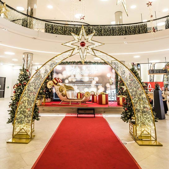 Cette arche de Noël intérieure s'adapte également aux centres commerciaux, halls d'accueil, ou grands espaces couverts.