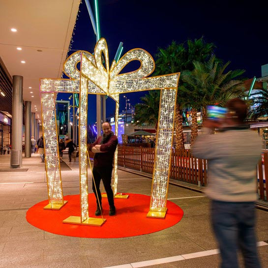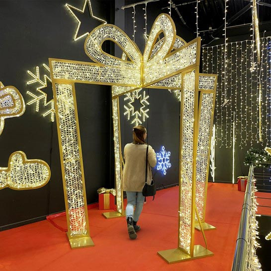 Cette arche cadeau doré LED peut être utilisée pour mariage, hôtel, bâtiment commercial, décoration de festival...