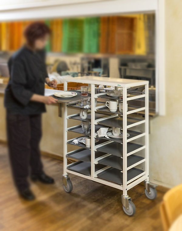 Le chariot porte-plateaux est une solution idéale pour le transport de plats déjàutilisé ou à servir ou encore les petites pièces dans de bonnes conditions.